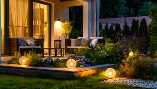 Un bon éclairage extérieur transforme votre jardin à la tombée de la nuit. Spots encastrés, bornes lumineuses, éclairage de massifs ou de façade : nous concevons des installations sur mesure pour valoriser votre extérieur, renforcer la sécurité des accès et créer une atmosphère chaleureuse et unique, été comme hiver.